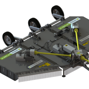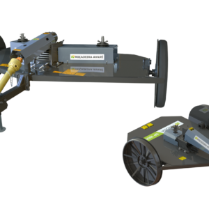 Desbrozadora arrastrada utilizada para limpiar pastos, paja y residuos de cultivos. Activación de la rotación de las cuchillas realizada por las ruedas a través de un diferencial de fabricación propia con corte para el transporte, opciones de transporte con neumáticos y un juego de 3 (tres) desbrozadoras, posibilitando un mayor rendimiento en el trabajo.